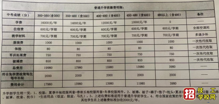 中職部收費(fèi):學(xué)費(fèi)9800元,住宿費(fèi)600元,體檢80,軍訓(xùn)費(fèi)300,拓展訓(xùn)練費(fèi)350,被褥生活用品700,教材400,服裝700
